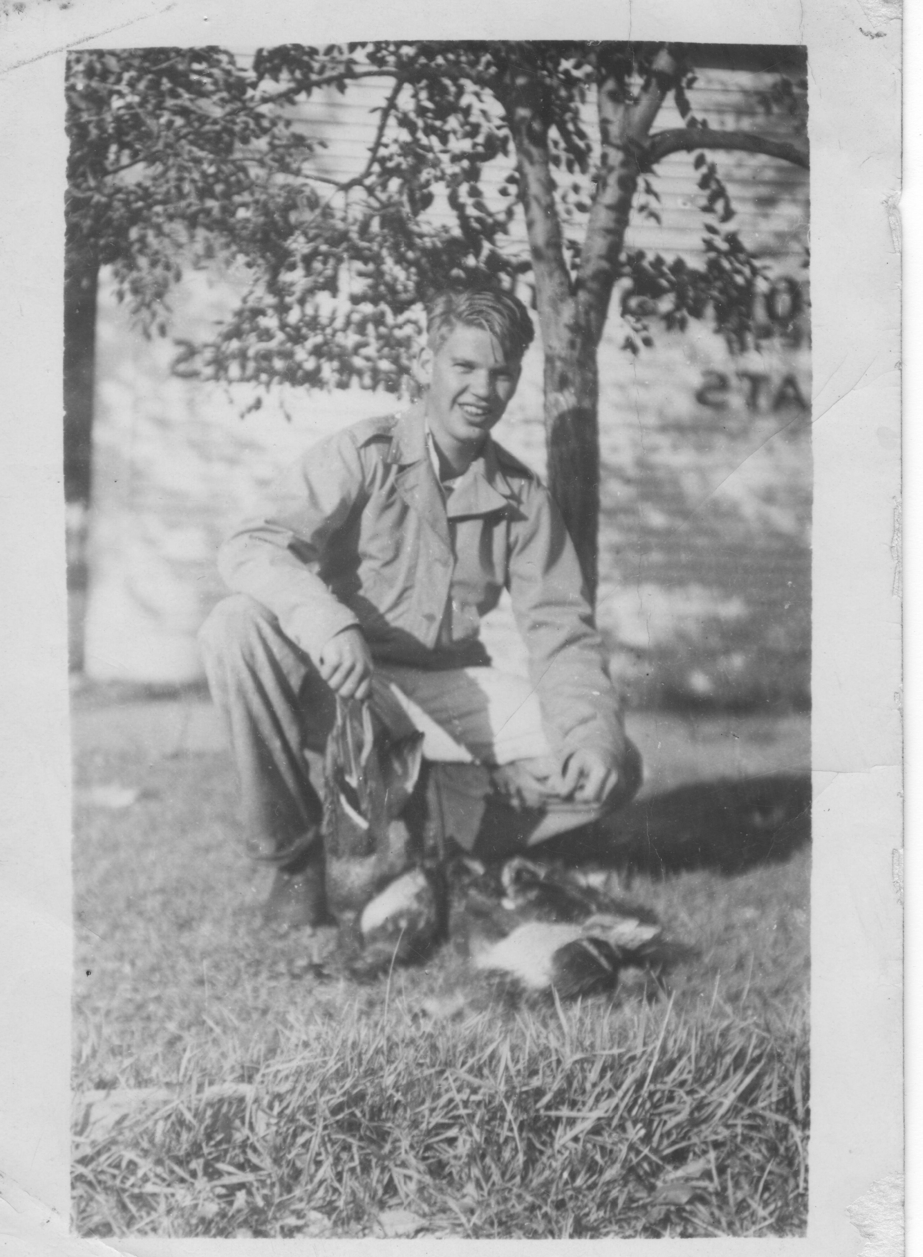 I’ve never written about the fellow I run around with, his name is Pat DeSalvatore (his picture is in the book I sent to you) an Italian from Boston, Mass. He is also an acting corporal and was also picked for A.S.T.P. He spent a year at the Univ. of Mass. before being drafted. 18 men out of 270 in our company were picked for A.S.T.P. so you see how hard it is to get in.