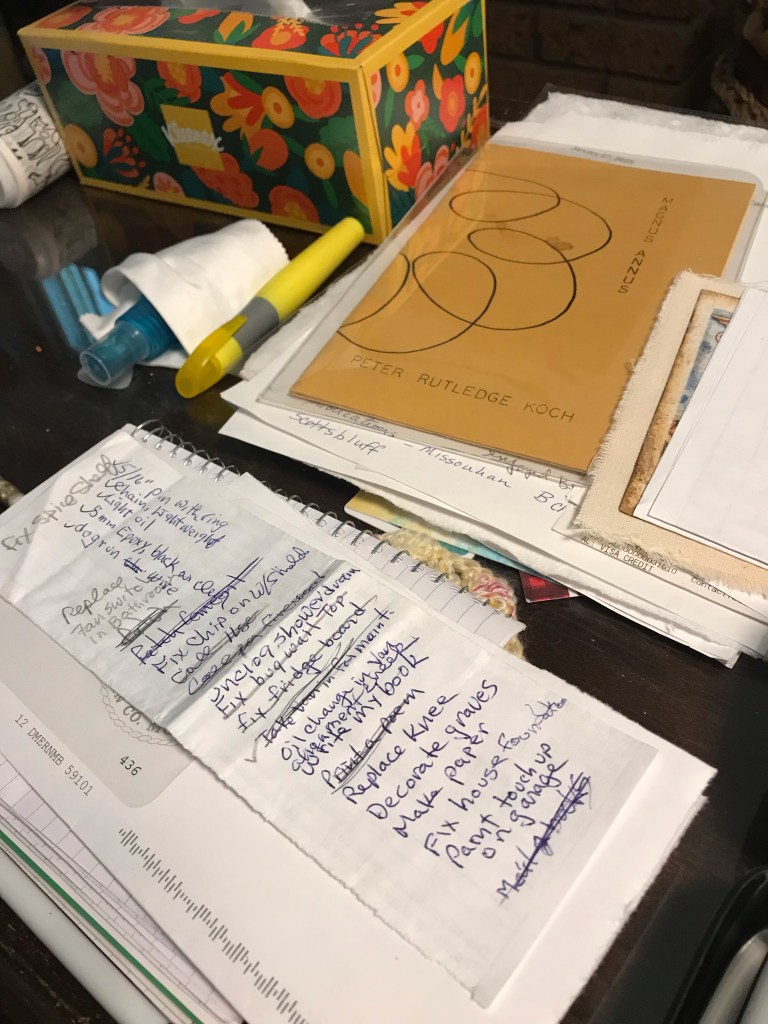 I feel better today, so I shuffle through the papers on table by my chair. And offer a word to you.