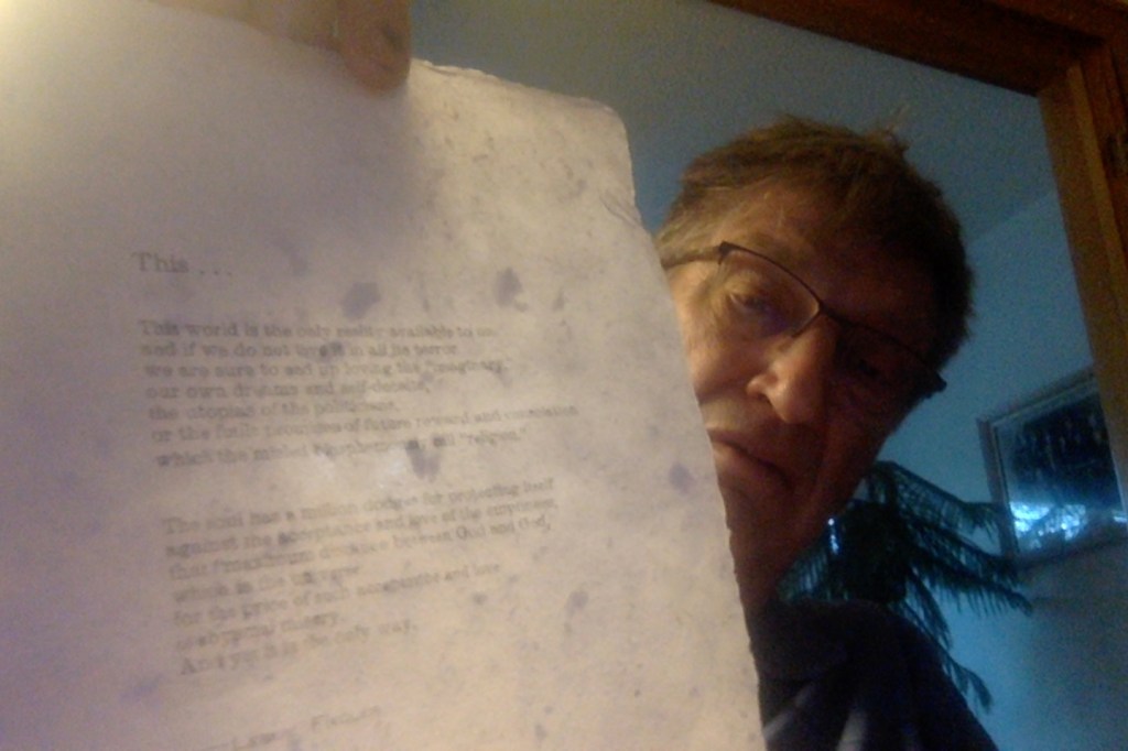 Review: Ash Wednesday, 2025, I vowed to make handmade paper to print a poem. Printers call sheets with poems broadsides. I vowed to create a broadside in 2025. I had a favorite poem, an introduction to a book, really, by our family friend and widely known literary critic, Leslie Fiedler.