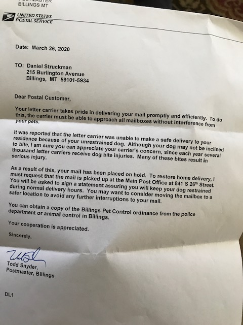 He smiled, placed the envelope into his mail pouch. “Thanks, Dan!” he said. He told me a couple minutes later that he would deliver mail to us again after he gets the letter I need to sign at the main post office.