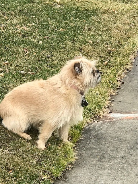 Back home, I harnessed Gunther for his noon constitutional walk. As we turned the corner of the block near Mrs. Johnson’s (where Gunther likes to poop) I came face-to-face with our carrier! Of course Gunther growled menacingly so I pulled tight his leash.