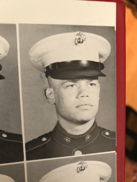 I wondered if this was the same Private Harmoning from USMC boot camp more than 50 years ago?  I reached for my bright red copy of “1969 San Diego California Marine Corps Recruit Depot.”  This book, published in hard back by Jostens Military Publications, was always mostly disappointing to me, still is.  Most of its un-numbered pages have stock photos of Marine Corps basic training life:  yellow footprints, mess hall, drill instructors, uniforms, close order drill, rifle range, hair cuts, graduation.  The good stuff is at the back, photos of our Platoon 3213, hastily snapped.  Last and best, photos of each recruit and our instructors.