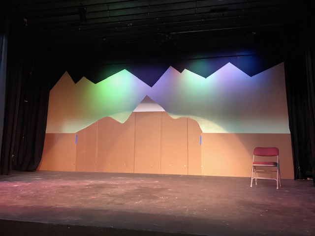 Dodie, the manager at NOVA theater, invited me to build a set. This turned out to be a great way to get me and my nephew Chris and his son Tyler out of the hectic house. Chris and Tyler painted and built what Dodie envisioned.