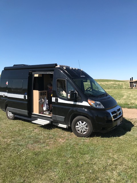 Now we have a Hymer, a sort of ultra-small RV consisting of a Dodge Ram Promaster that has been converted to a motor home, complete with kitchen, bath, and bedroom. Also dining area. Obviously, certain areas serve more than one purpose. We bought the Hymer in Anchorage, sight unseen. Penny, Gunther, and I flew to Anchorage, bought the van, drove it south through Canada to our son Todd and his family’s home in Duluth, Minnesota.