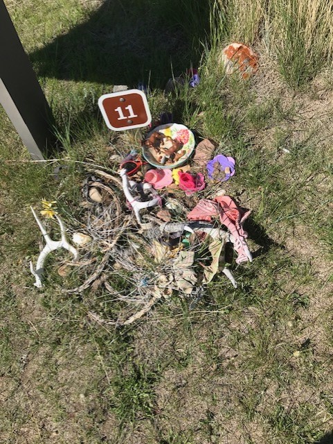 Near there we stayed the night in a forest service campground, “Bad Medicine Campground.” I put the $16 fee into the available envelope, filled out the form front and back, but the pay station box was duct taped shut. I tore the tape where the slot was, then, murmuring “take my money, goddamn it!” I forced the envelope with payment inside.