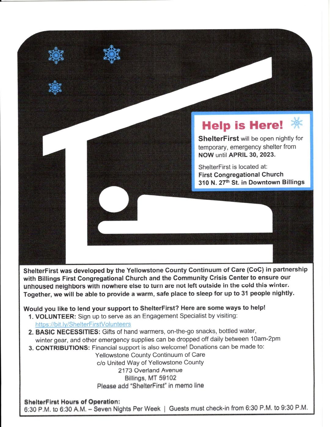 Shelter First is when Billings First Congregational church gives floor sleeping space to street people.