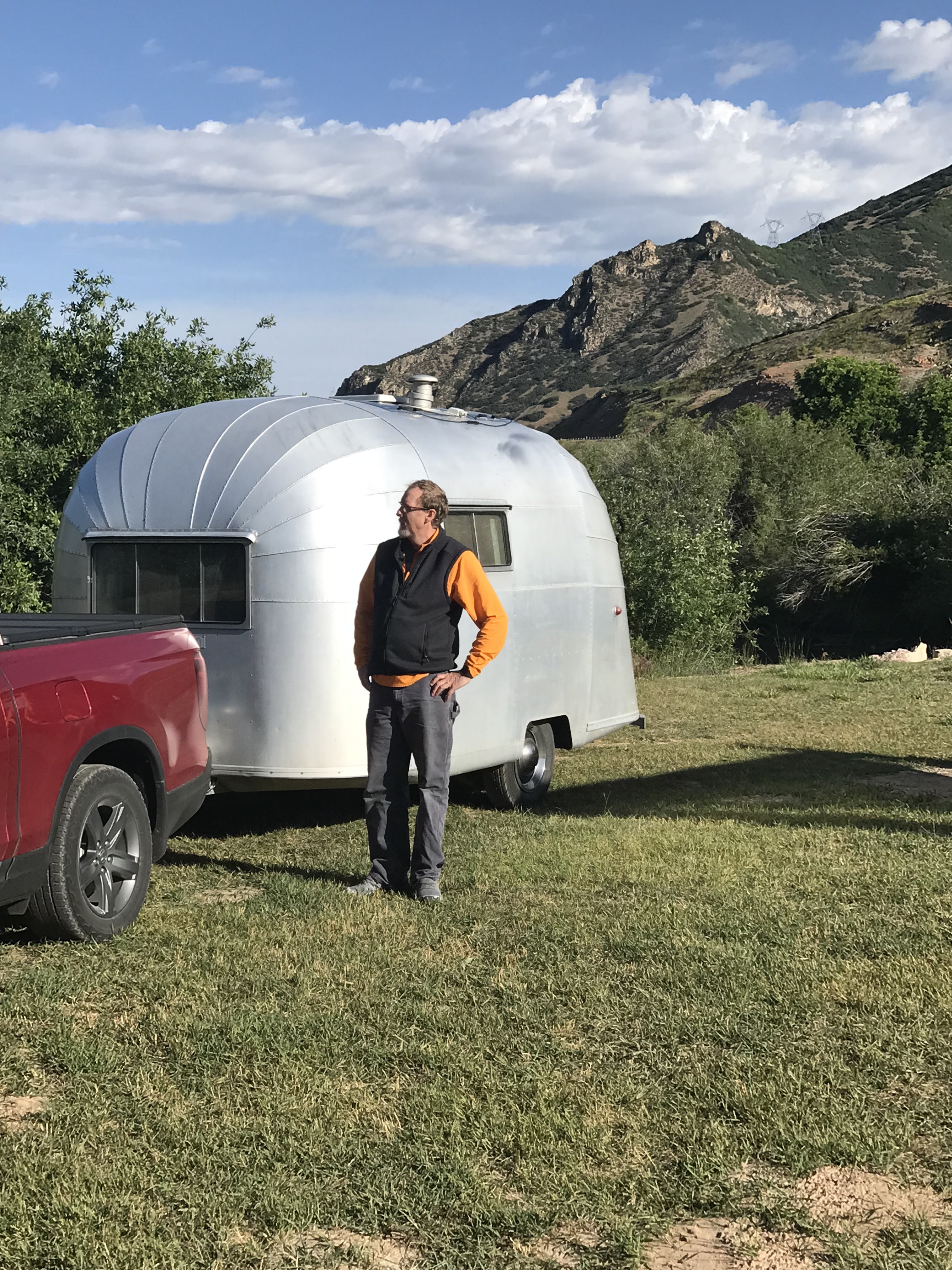 My nephew Jon drove me from Billings, Montana, to Kanab, Utah, last week in his Honda pickup, towing his 1956 Airstream. The first day of the journey Jon drove to Spanish Fork campground, close to Provo, where we spent a pleasant night, interrupted by a train a couple times. The approximately 10-foot trailer has two beds.